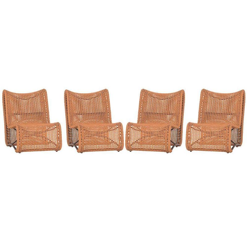 4 Poltronas Texas Em Alumínio Marrom Corda Náutica Trama Terra Cota