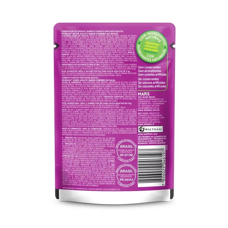 Ração Úmida Whiskas Sachê Cordeiro ao Molho para Gatos Adultos 85g
