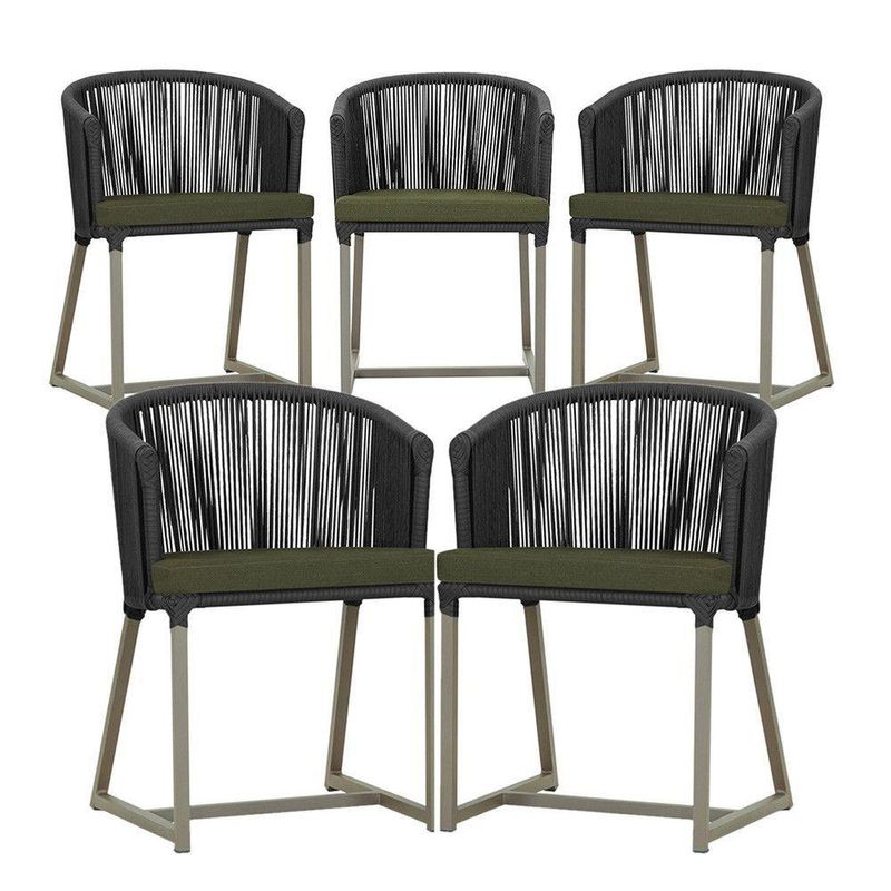 5 Cadeiras De Jantar Noronha Fendi Corda Náutica E13 Trama Preto