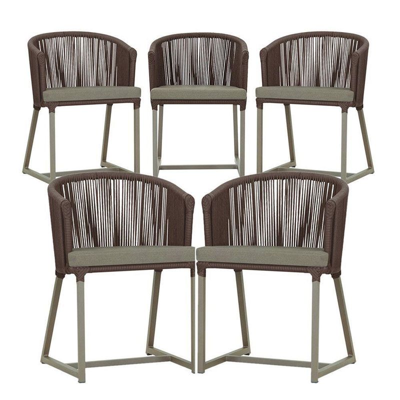 5 Cadeiras De Jantar Noronha Fendi Corda Náutica E8 Trama Marrom