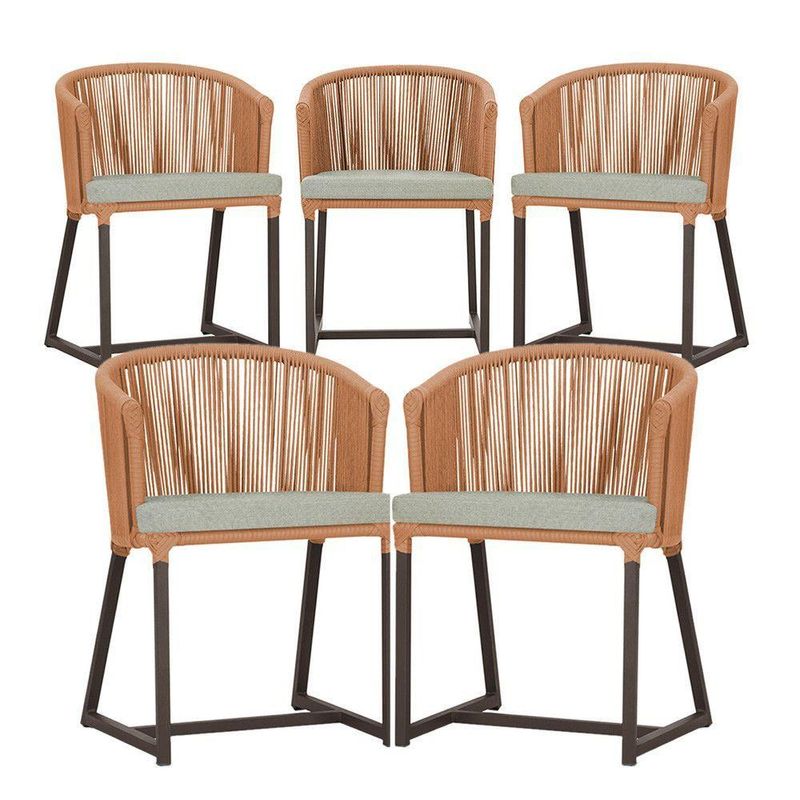 5 Cadeiras De Jantar Noronha Marrom Corda Náutica E3 Trama Terra Cota