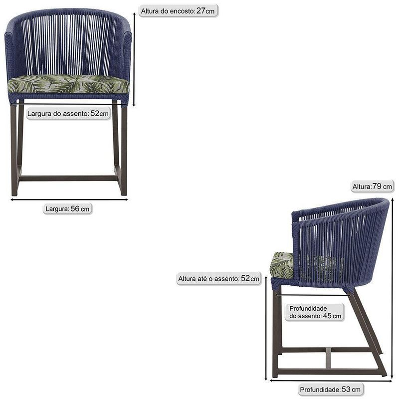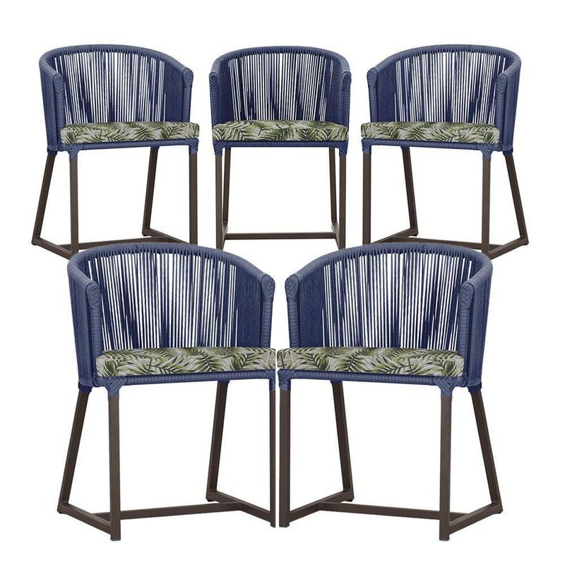 5 Cadeiras De Jantar Noronha Marrom Corda Náutica E5 Trama Azul