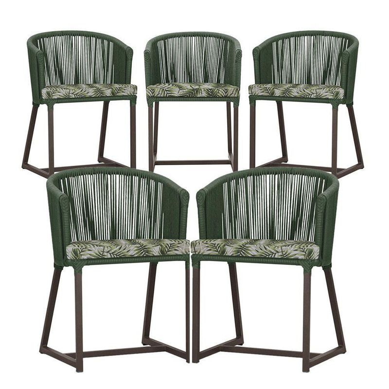5 Cadeiras De Jantar Noronha Marrom Corda Náutica E5 Trama Verde