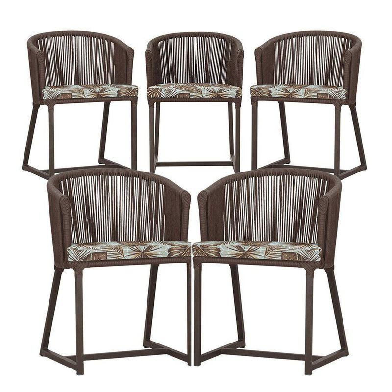 5 Cadeiras De Jantar Noronha Marrom Corda Náutica E6 Trama Marrom
