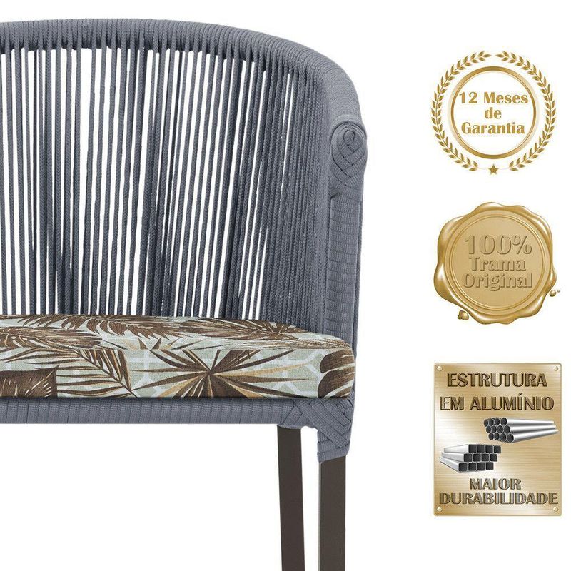 Descubra a Elegancia e Durabilidade da Cadeira Noronha. Combinando estilo e resistencia, esta cadeira traz o melhor do design contemporaneo em aluminio com micro pintura e acabamento em corda nautica. O estofado impermeavel completa o conforto e a funcionalidade, tornando-a ideal para ambientes externos e internos. Qualidade e elegancia que transformam qualquer espaco. Adicione um toque de sofisticacao e conforto ao seu espaco com a cadeira Noronha.