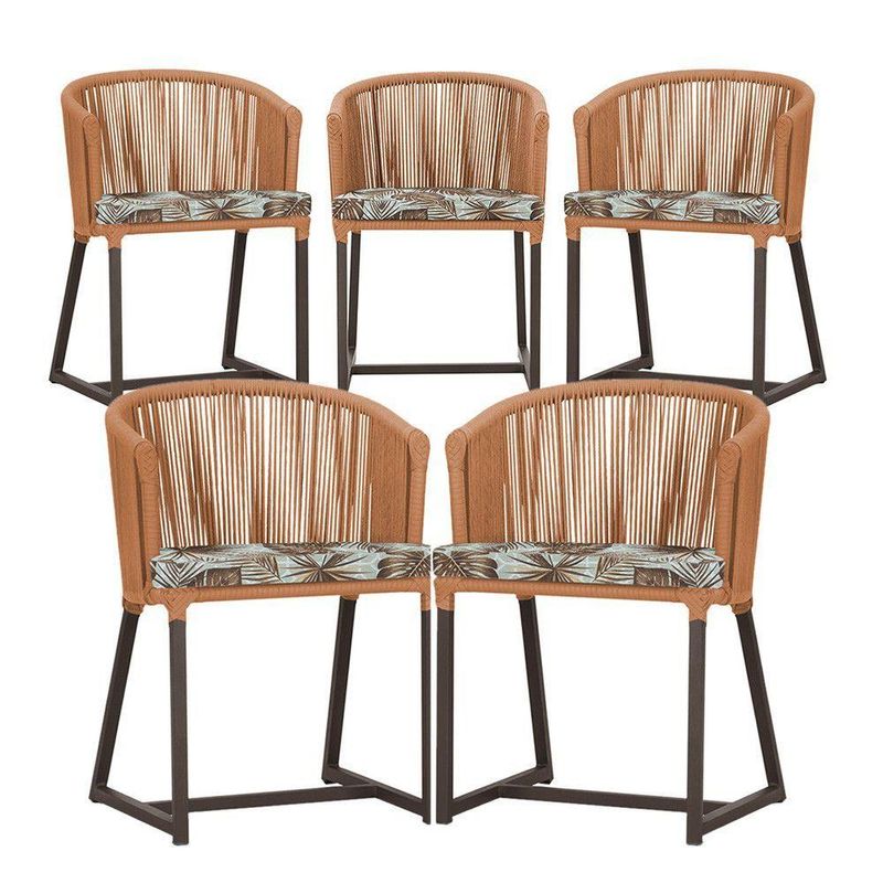 5 Cadeiras De Jantar Noronha Marrom Corda Náutica E6 Trama Terra Cota