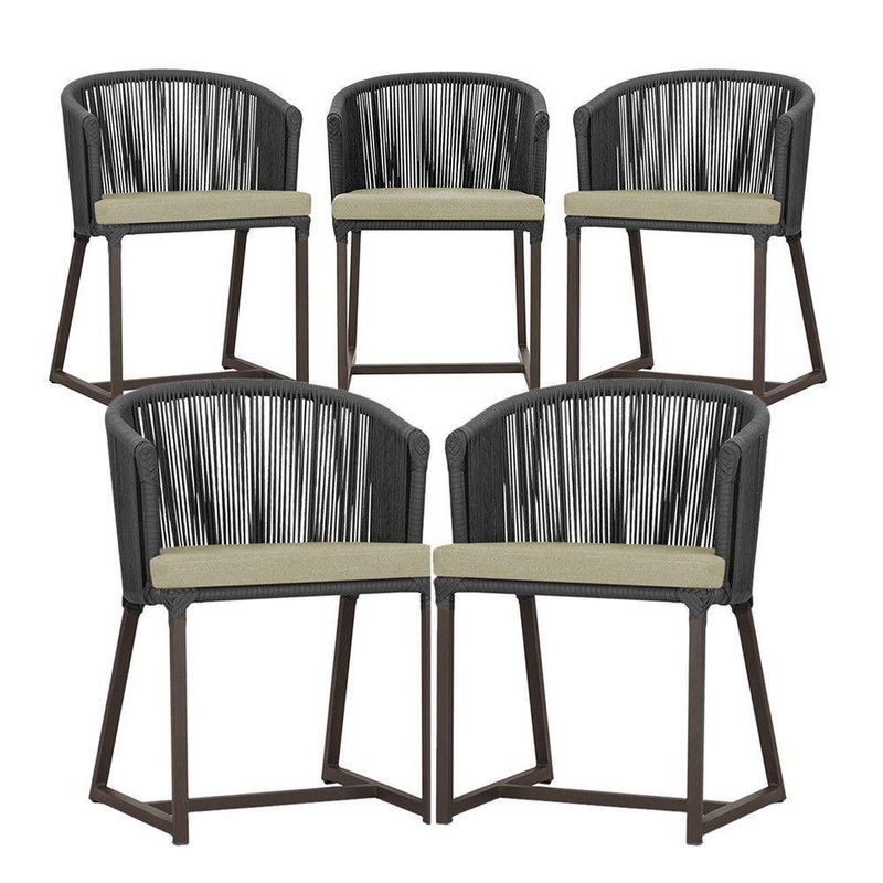 5 Cadeiras De Jantar Noronha Marrom Corda Náutica E7 Trama Preto