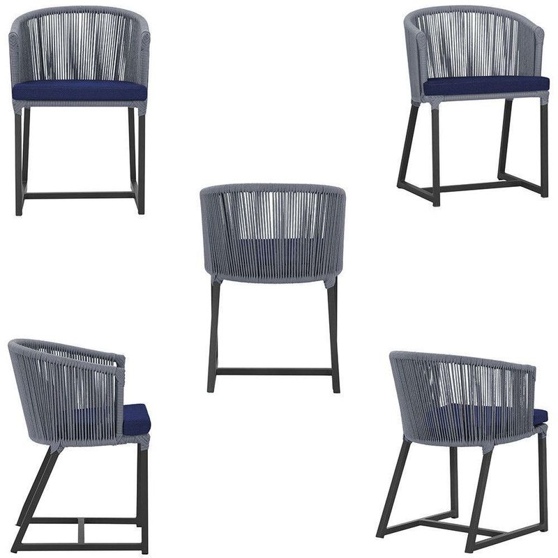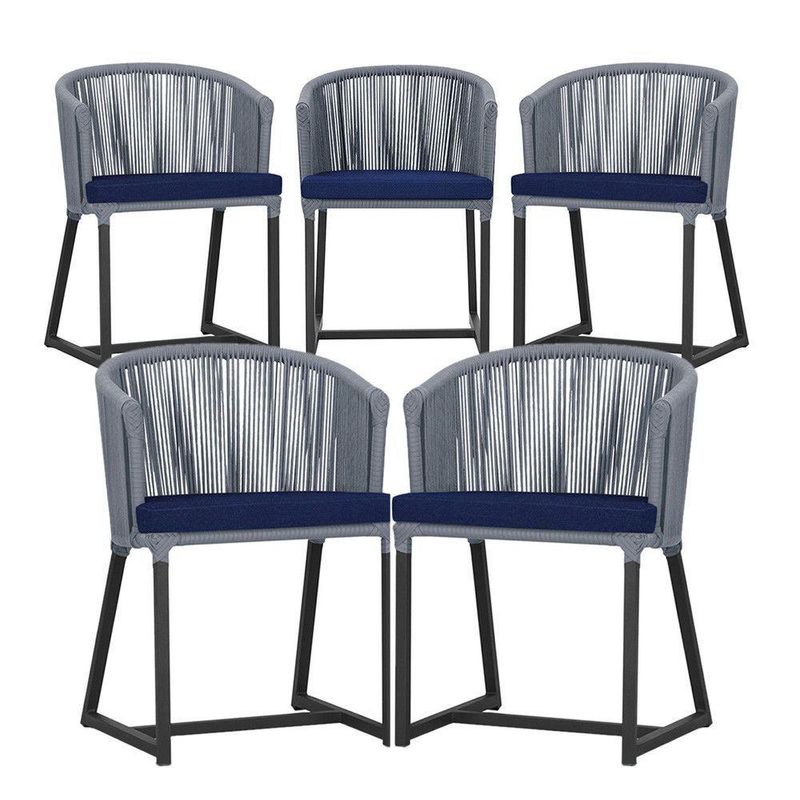 5 Cadeiras De Jantar Noronha Preta Corda Náutica E10 Trama Prata