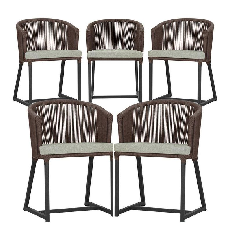 5 Cadeiras De Jantar Noronha Preta Corda Náutica E3 Trama Marrom