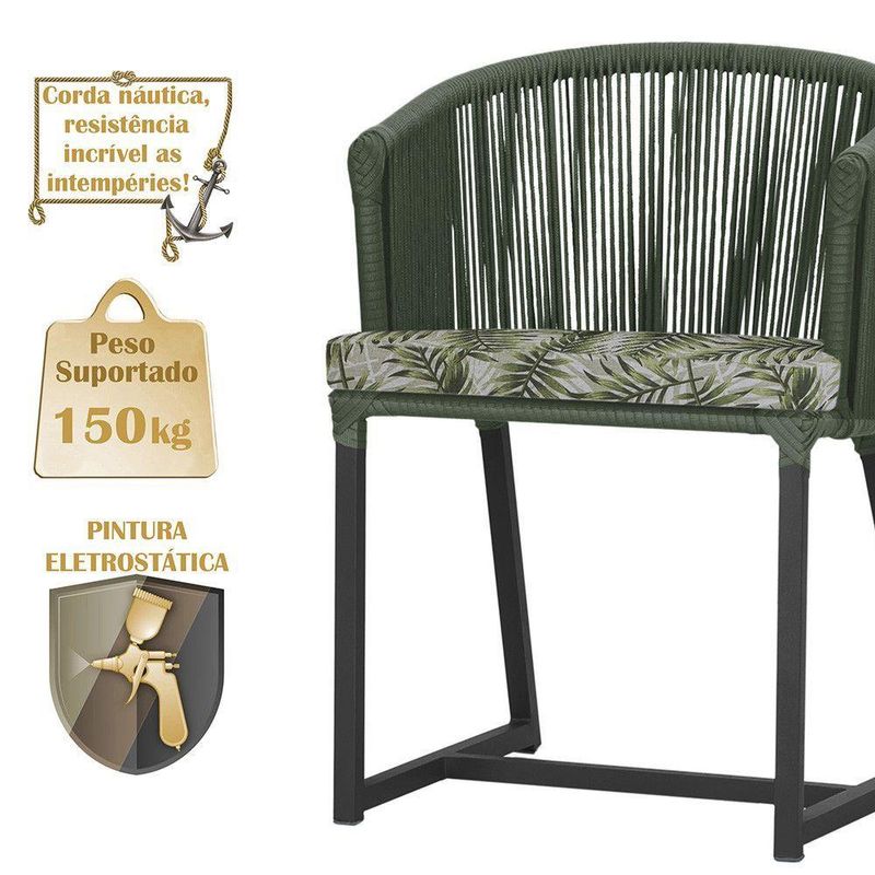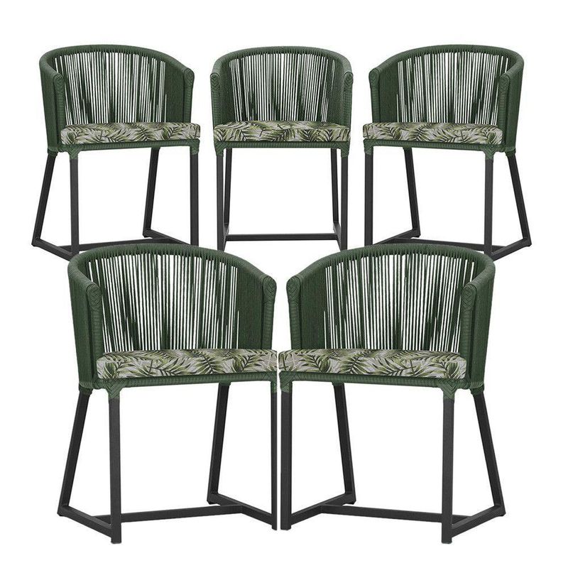5 Cadeiras De Jantar Noronha Preta Corda Náutica E5 Trama Verde