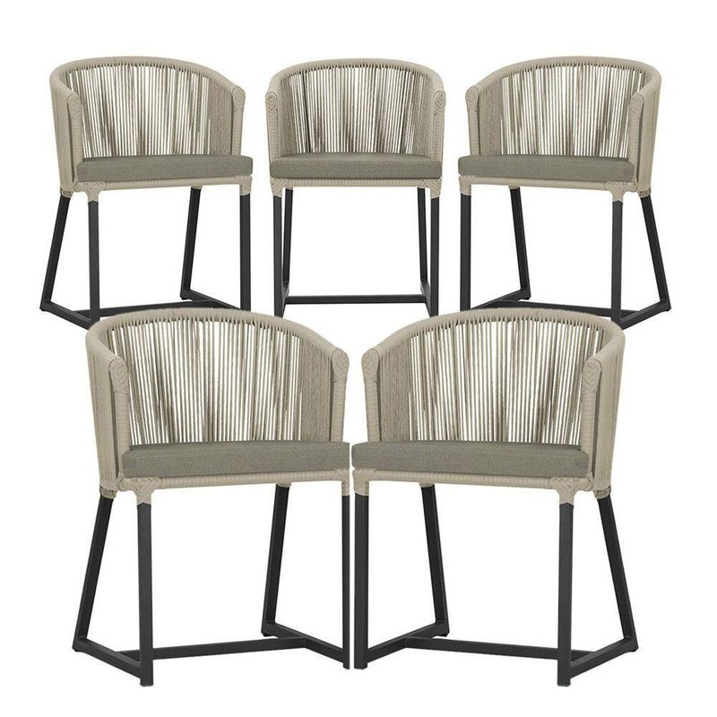 5 Cadeiras De Jantar Noronha Preta Corda Náutica E8 Trama Rami