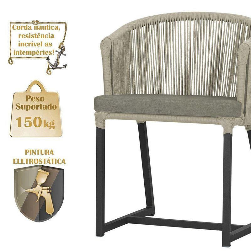 Descubra a Elegancia e Durabilidade da Cadeira Noronha. Combinando estilo e resistencia, esta cadeira traz o melhor do design contemporaneo em aluminio com micro pintura e acabamento em corda nautica. O estofado impermeavel completa o conforto e a funcionalidade, tornando-a ideal para ambientes externos e internos. Qualidade e elegancia que transformam qualquer espaco. Adicione um toque de sofisticacao e conforto ao seu espaco com a cadeira Noronha.