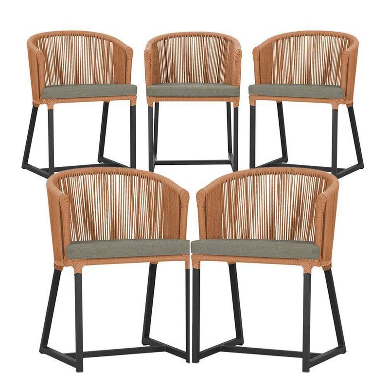5 Cadeiras De Jantar Noronha Preta Corda Náutica E8 Trama Terra Cota