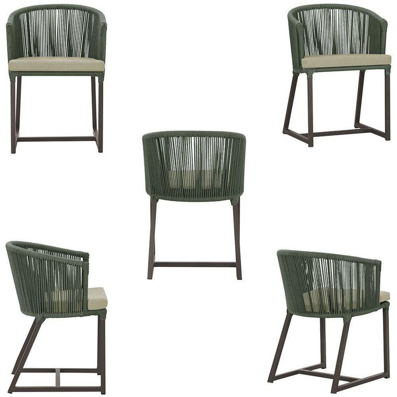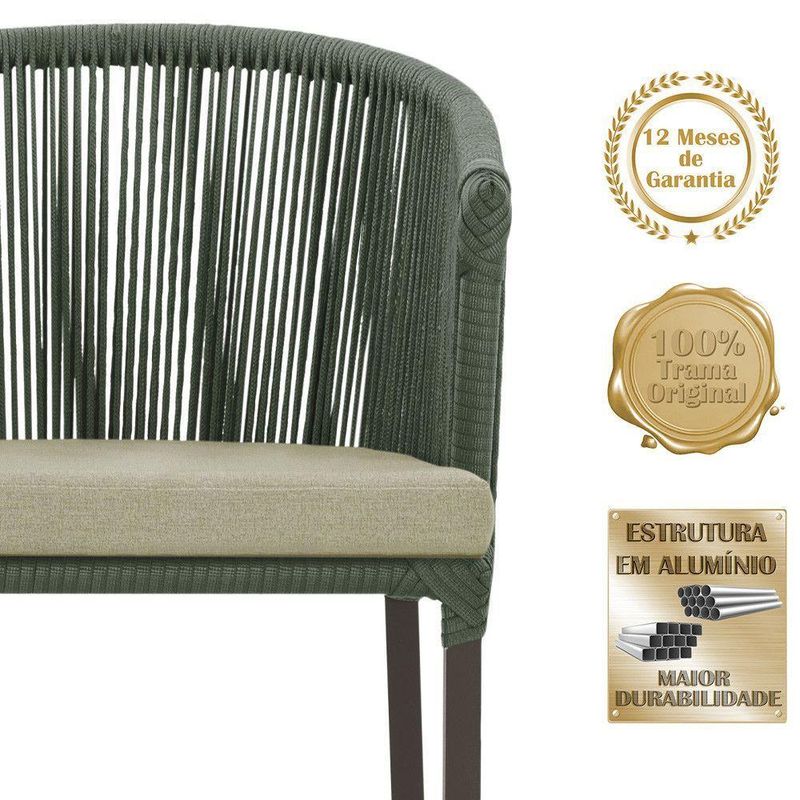 Combinando estilo e resistencia, esta cadeira traz o melhor do design contemporaneo em aluminio com micro pintura e acabamento em corda nautica. O estofado impermeavel completa o conforto e a funcionalidade, tornando-a ideal para ambientes externos e internos.
