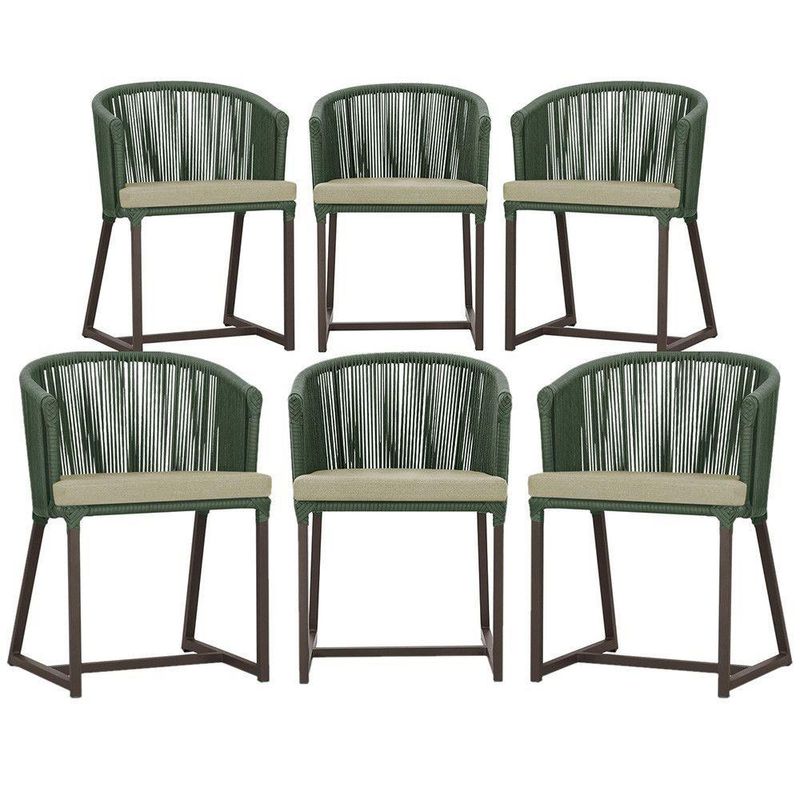 6 Cadeiras De Jantar área Noronha Marrom E7 Trama Verde