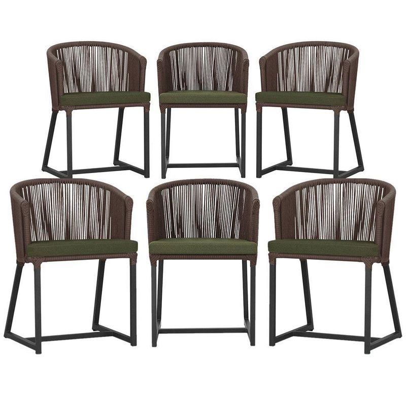 6 Cadeiras De Jantar área Noronha Preta E13 Trama Marrom