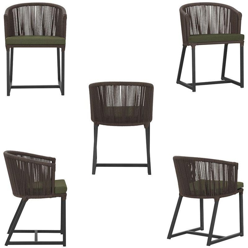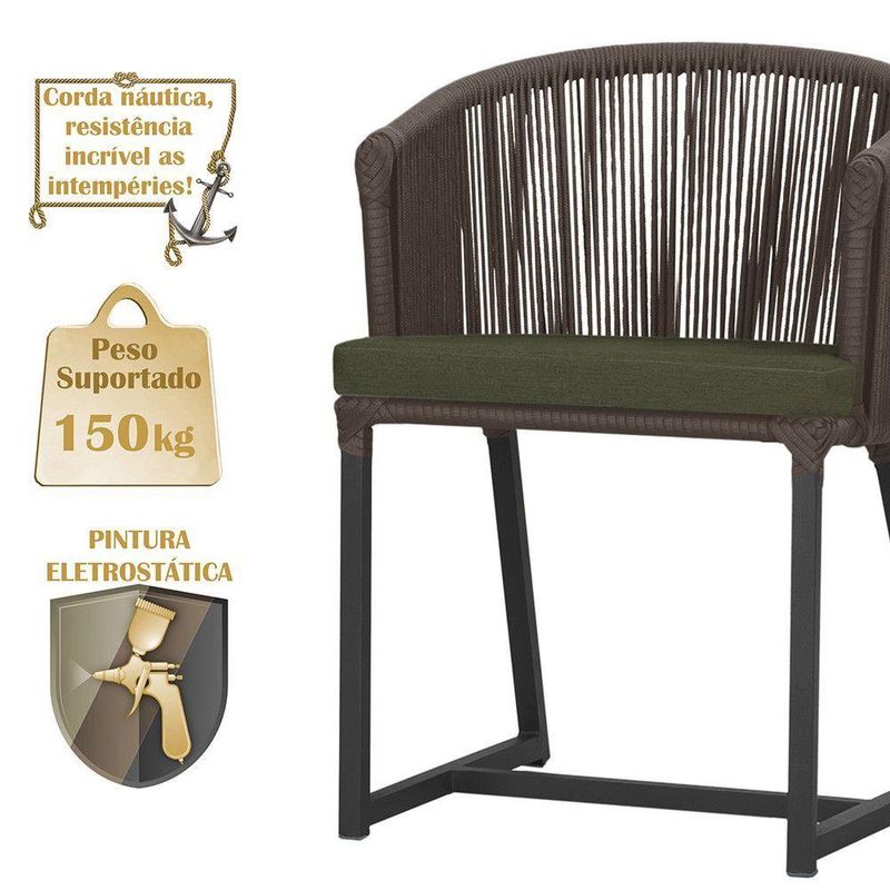 Combinando estilo e resistencia, esta cadeira traz o melhor do design contemporaneo em aluminio com micro pintura e acabamento em corda nautica. O estofado impermeavel completa o conforto e a funcionalidade, tornando-a ideal para ambientes externos e internos.