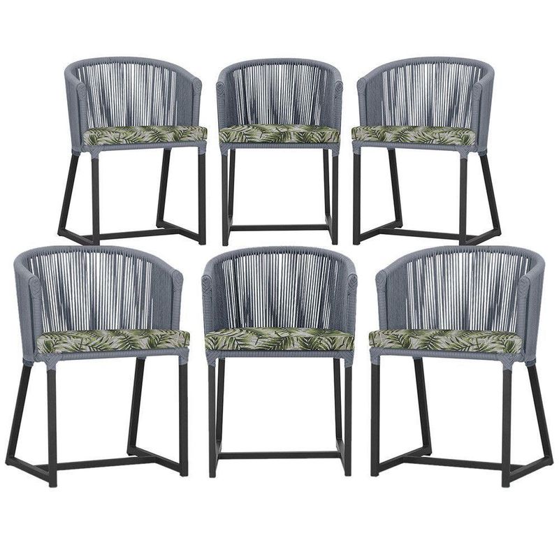 6 Cadeiras De Jantar área Noronha Preta E5 Trama Prata