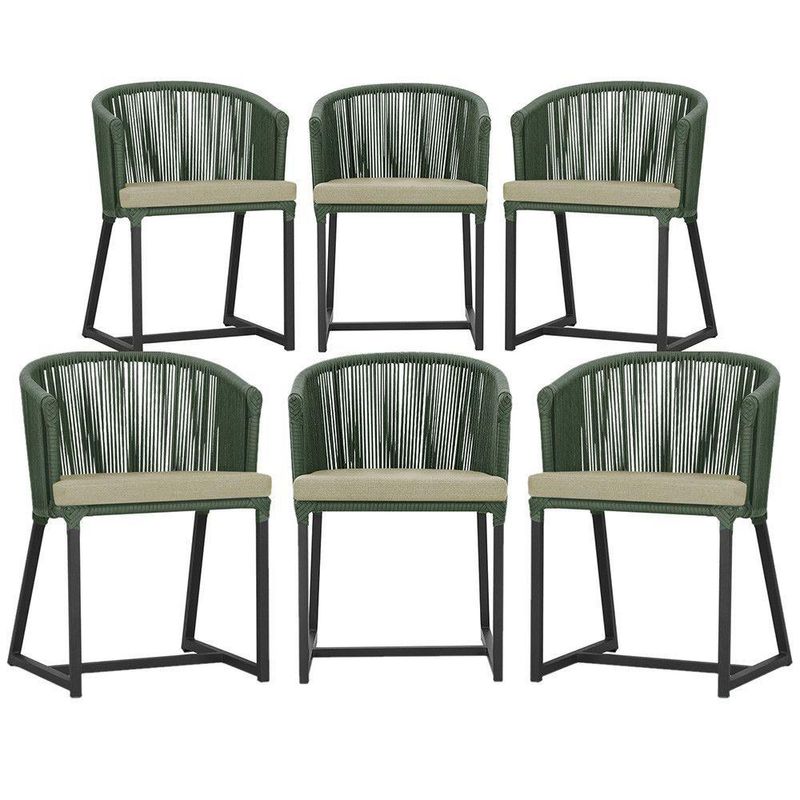 6 Cadeiras De Jantar área Noronha Preta E7 Trama Verde