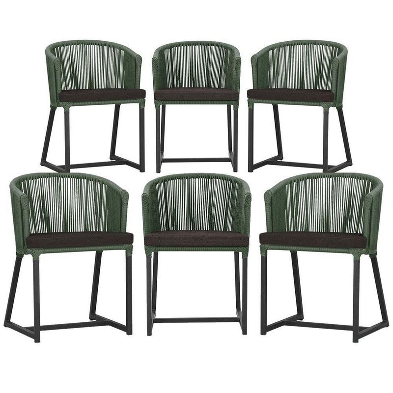 6 Cadeiras De Jantar área Noronha Preta E9 Trama Verde