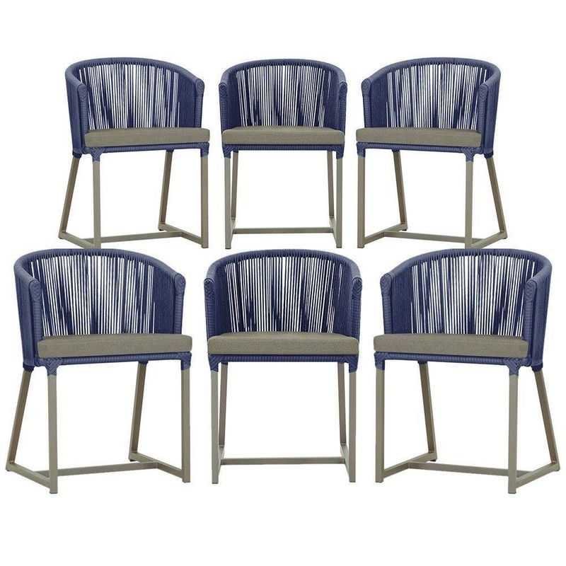 6 Cadeiras De Jantar Noronha Fendi Corda Náutica E8 Trama Azul