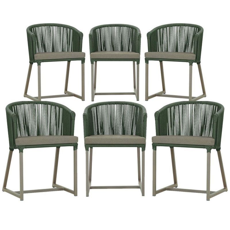 6 Cadeiras De Jantar Noronha Fendi Corda Náutica E8 Trama Verde