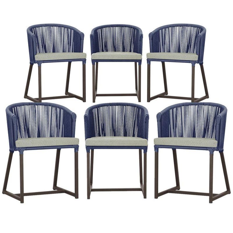 6 Cadeiras De Jantar Noronha Marrom Corda Náutica E3 Trama Azul