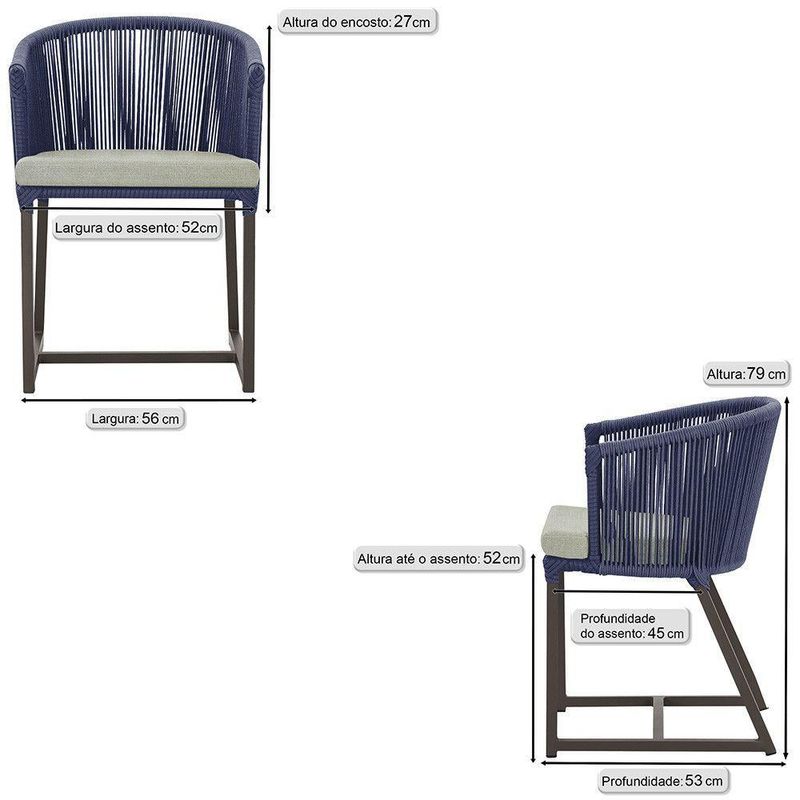 Antes de comprar o seu produto verifique as medidas, o local onde pretende instalar e se necessario contratar o servico de um qualificado. Produto conhecido como: Cadeira Noronha, Cadeira de aluminio, Corda nautica, Estofado impermeavel, Moveis de exterior, Cadeira resistente a agua, Design moderno em Cadeira, Cadeira para area externa, Cadeira de jardim, Moveis para varanda, Cadeira duravel, Cadeira de alta qualidade, Conforto em Cadeira, Cadeira elegante.