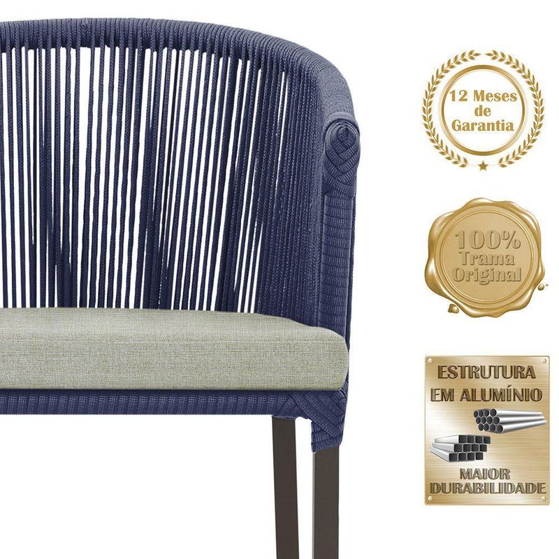 Descubra a Elegancia e Durabilidade da Cadeira Noronha. Combinando estilo e resistencia, esta cadeira traz o melhor do design contemporaneo em aluminio com micro pintura e acabamento em corda nautica. O estofado impermeavel completa o conforto e a funcionalidade, tornando-a ideal para ambientes externos e internos. Qualidade e elegancia que transformam qualquer espaco. Adicione um toque de sofisticacao e conforto ao seu espaco com a cadeira Noronha.