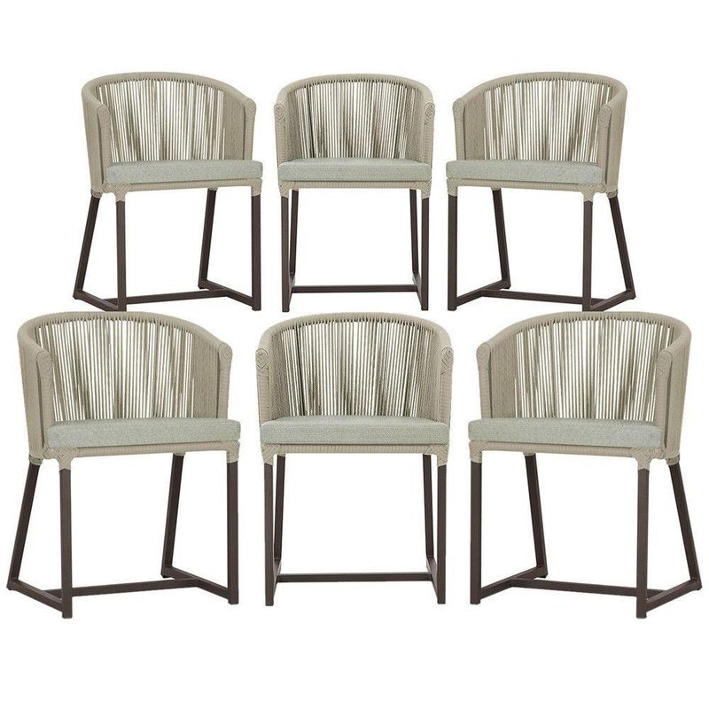 6 Cadeiras De Jantar Noronha Marrom Corda Náutica E3 Trama Rami