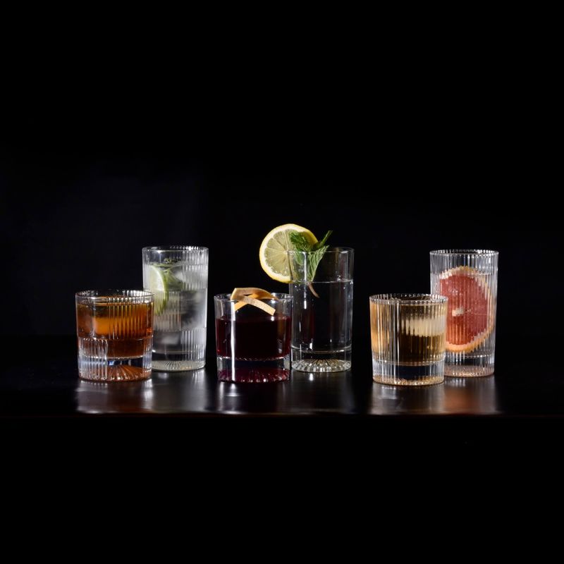 Design sofisticado e elegante com textura canelada que reflete a luz de forma sofisticada, tornando-o uma peça de destaque na mesa ou no bar. Material de Feito de vidro grosso e resistente, oferece durabilidade e segurança, reduzindo o risco de quebras e lascas.