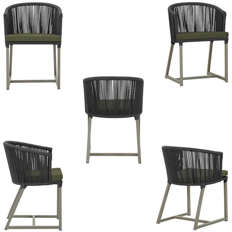 Combinando estilo e resistencia, esta cadeira traz o melhor do design contemporaneo em aluminio com micro pintura e acabamento em corda nautica. O estofado impermeavel completa o conforto e a funcionalidade, tornando-a ideal para ambientes externos e internos.