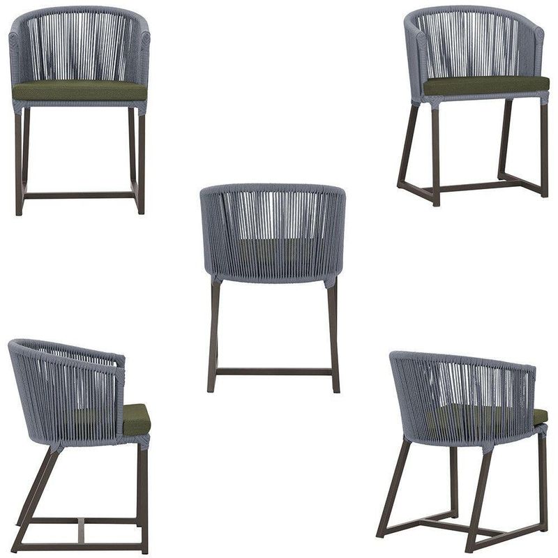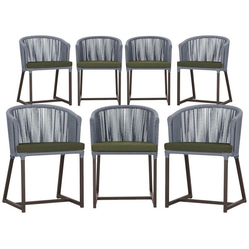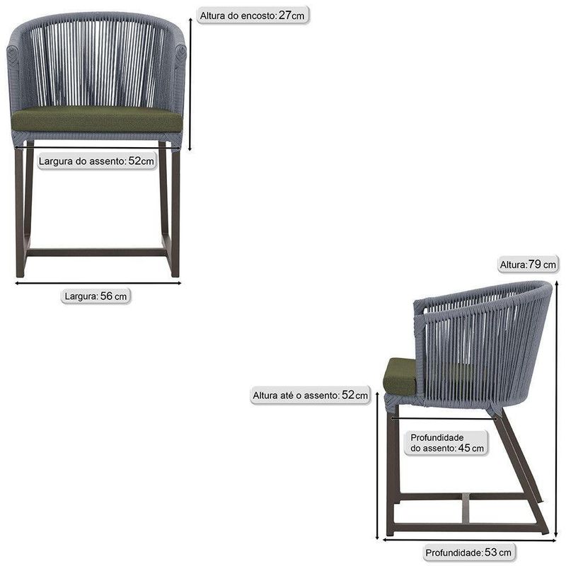 Combinando estilo e resistencia, esta cadeira traz o melhor do design contemporaneo em aluminio com micro pintura e acabamento em corda nautica. O estofado impermeavel completa o conforto e a funcionalidade, tornando-a ideal para ambientes externos e internos.