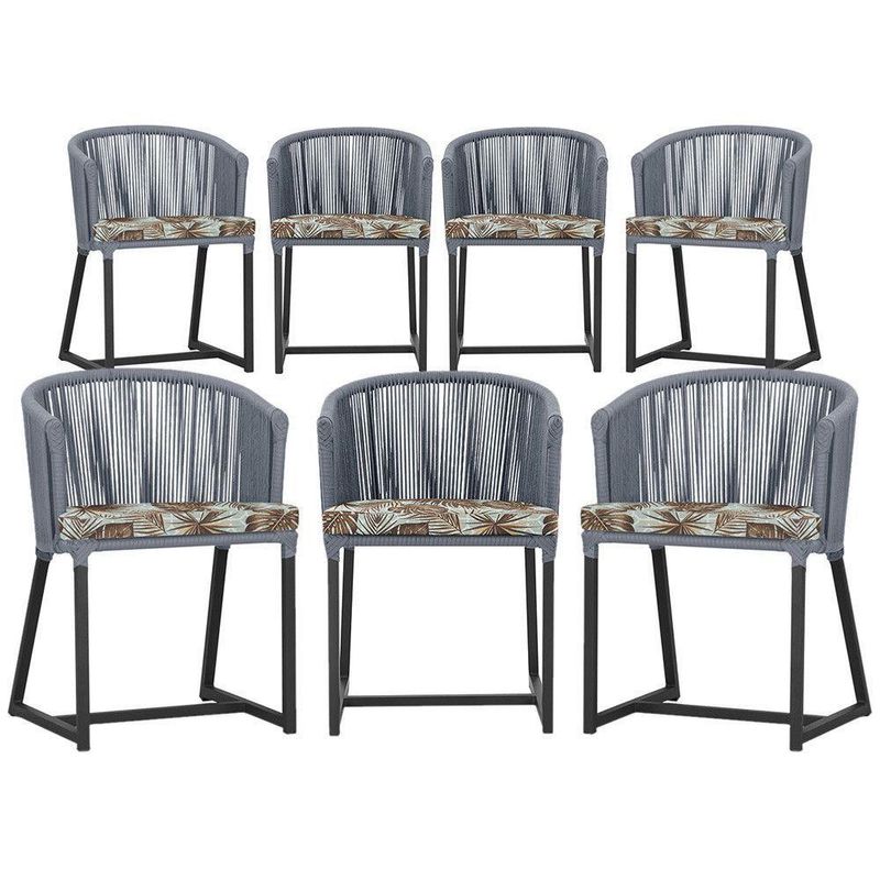 7 Cadeiras De Jantar área Noronha Preta E6 Trama Prata