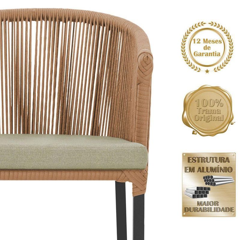 Combinando estilo e resistencia, esta cadeira traz o melhor do design contemporaneo em aluminio com micro pintura e acabamento em corda nautica. O estofado impermeavel completa o conforto e a funcionalidade, tornando-a ideal para ambientes externos e internos.