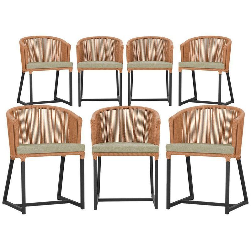 7 Cadeiras De Jantar área Noronha Preta E7 Trama Terra Cota