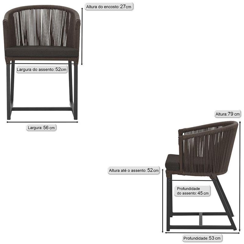 7 Cadeiras De Jantar área Noronha Preta E9 Trama Marrom