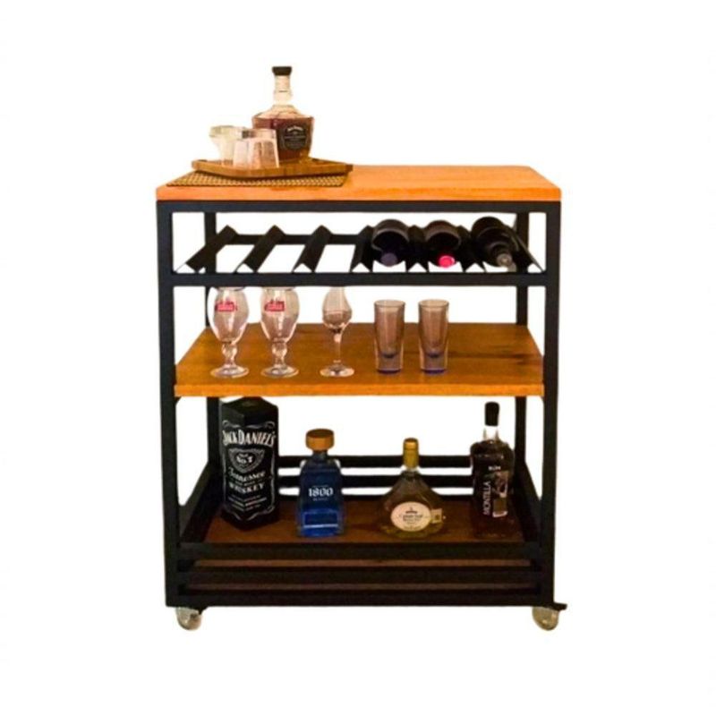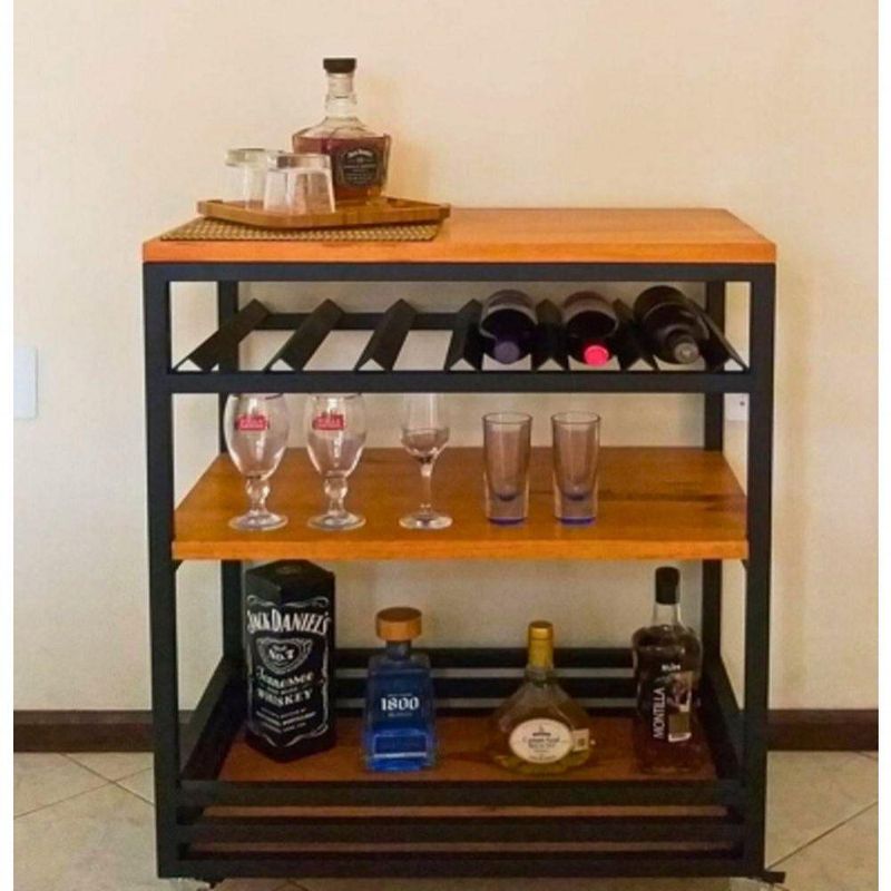 Adega Carrinho Aço Ferro Metal Robusta Cor Preto Mdf Claro Estilo Industrial Ad-03