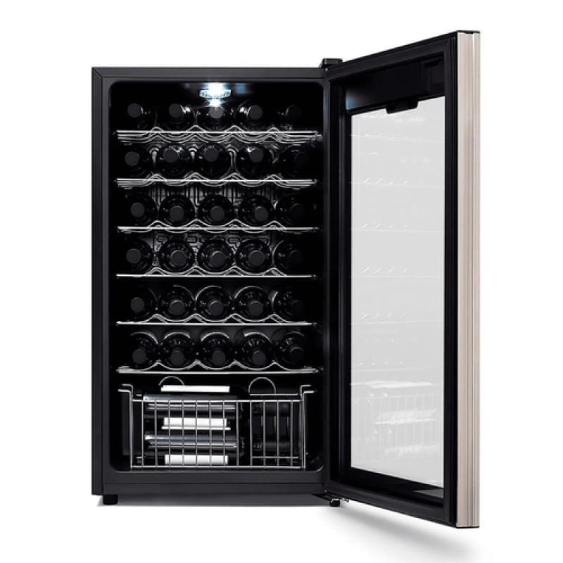 Com capacidade para 34 garrafas, ela é perfeita para quem está começando a se aventurar nesse mundo ou para quem já tem uma coleção em crescimento. Com um design sofisticado, essa adega combina com qualquer ambiente da casa. Seu vidro transparente permite que você visualize facilmente a parte interna, enquanto a iluminação em LED branco proporciona um ambiente elegante e moderno. Além disso, seu acabamento lateral em inox dá um toque de sofisticação. O painel touch com controle digital da temperatura permite que você ajuste a temperatura exata para cada tipo de vinho, garantindo que cada rótulo seja armazenado na temperatura ideal.E o melhor: você pode controlar todas as funções sem precisar abrir a porta da adega, evitando que a temperatura interna seja afetada. As prateleiras cromadas são ergonômicas e resistentes, garantindo que suas garrafas sejam armazenadas com segurança e organização. E com puxador embutido na lateral da porta e pés niveladores, a instalação e ajuste ficam ainda mais fáceis.Para quem tem crianças em casa, a trava do painel evita o acionamento acidental ou o uso por crianças. E com seu baixo nível de ruído e gás refrigerante ecologicamente correto, essa adega é uma escolha consciente e sustentável. Não perca mais tempo deixando suas garrafas de vinho espalhadas pela casa ou em lugares inadequados. Invista na Adega Midea 34 garrafas e tenha um espaço organizado e seguro para suas bebidas preferidas.