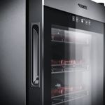 O potente e eficiente sistema de refrigeração por compressor mantém a temperatura específica entre 5 °C e 22 °C. Elegante porta de vidro triplo com detalhes em aço inoxidável. Controles convenientemente localizados na porta, incluindo um puxador integrado que economiza espaço. A luz LED branca ilumina suavemente e exibe as garrafas de vinho no interior. Sistema de circulação de ar integrado para uma distribuição de temperatura uniforme.