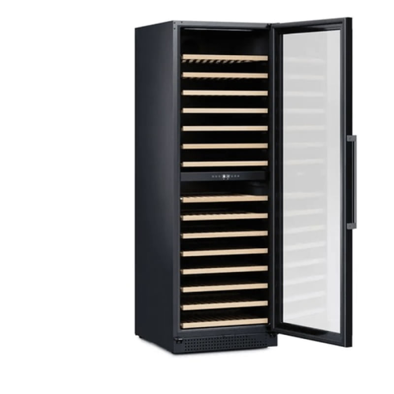 Os elegantes detalhes em aço inoxidável combinam com outros eletrodomésticos da cozinha, criando uma estética harmoniosa. A porta com sentido de abertura reversível oferece flexibilidade adicional para um ajuste perfeito em sua casa. A adega Dometic C154F pode armazenar até 154 garrafas Bordeaux em suas duas zonas de temperatura separadas que podem ser definidas entre 5 °C e 22 °C. Graças à poderosa tecnologia de resfriamento do compressor, resfria o vinho de maneira confiável e eficiente, independentemente da temperatura ambiente. Design clássico elegante.Guarde sua preciosa coleção de vinhos em uma adega Dometic com design excepcional. Com seus elegantes detalhes em aço inoxidável e atraente iluminação interior, a linha Classic de adegas da Dometic complementa qualquer espaço. Permita que essa adega ocupe o centro das atenções na sua cozinha, melhore a estética da sua casa e desfrute do vinho no seu melhor.