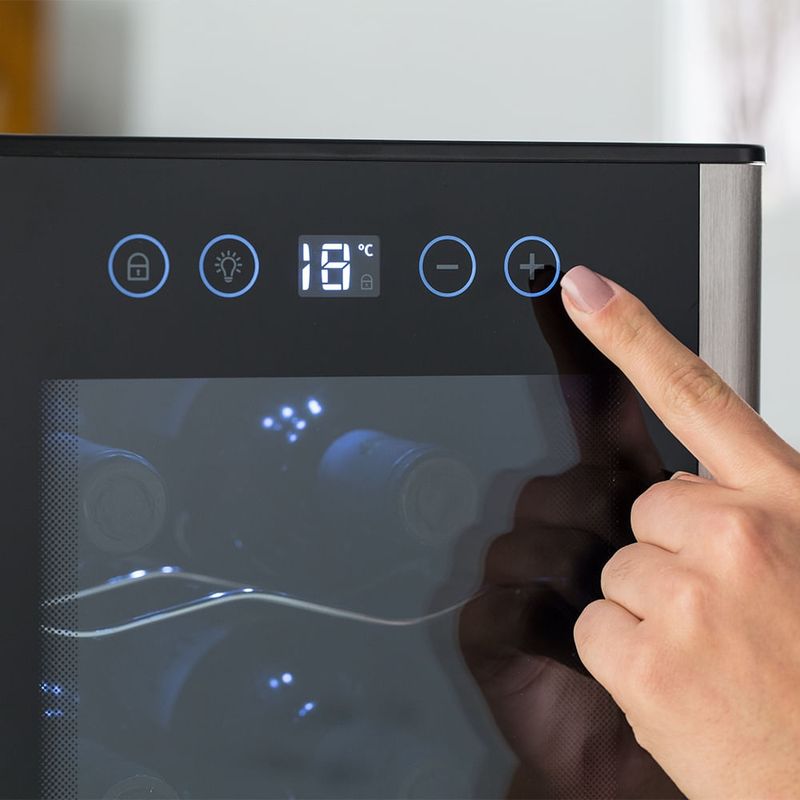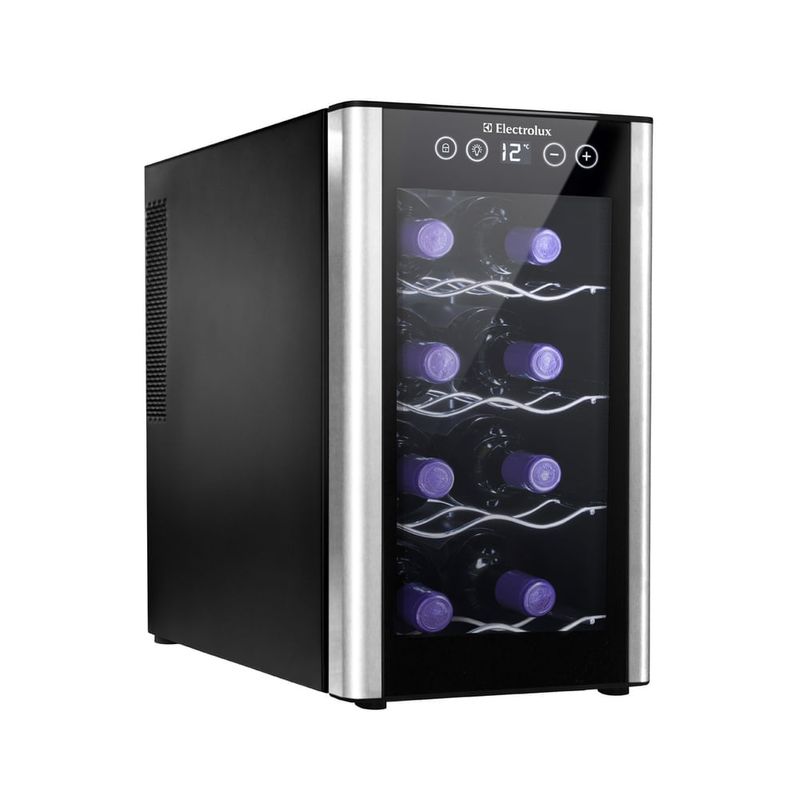A Adega de Vinhos Electrolux ACB08 para 8 garrafas possui display de temperatura externo, que permite controlar a temperatura sem ter que abrir a adega desnecessariamente. Seu sistema de iluminação interna com LEDs conta com pequenos emissores de luz, que não danificam as características originais do vinho. É produzida com material altamente durável, com acabamento em alumínio escovado. Compacta e elegante, essa adega é ideal para qualquer espaço da sua casa.