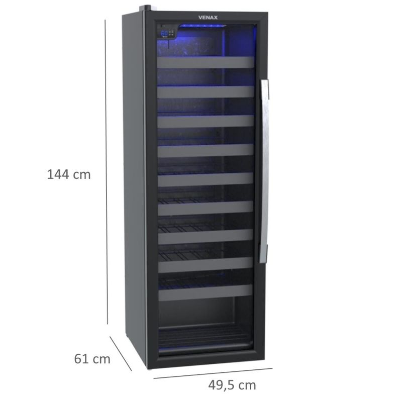 As adegas Venax esbanjam design e sofisticação. O modelo Piubella 200 vai deixar o seu vinho na temperatura ideal para consumo. Ela comporta 50 garrafas, possui prateleiras deslizantes e porta de vidro duplo. Ela também possui luz interna em LED azul e você controla a temperatura através de um controlador digital. Porque os melhores vinhos merecem as melhoras adegas.