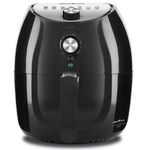 O cesto da Air fryer é removível, simples de usar e limpar, com capacidade de 4,1 litros. Possui timer de 60 minutos com desligamento automático. Possui proteção contra superaquecimento.
