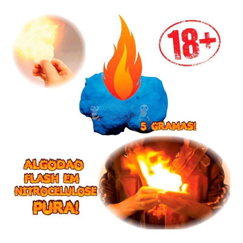 Algodão Flash 5 gramas - Escolha sua corAlgodão flash importado da melhor qualidade do mercado . Marca europeia Panda magic . Queima instantaneamente sem deixar nenhum resíduo.Um pequeno pedaço deste algodão é suficiente para se produzir um clarão superior e bem mais intenso que o papel flash, ideal para produções flash.Para efeitos especiais mágicos! Itens Inclusos:- 01 Pacote de algodão flash 5 gramasEspecificações técnicas:- Combustão instantanêa- Proibido para menores de 18 anosPerguntas frequentes:1 - Quanto tempo demora a combustão? A combustão é instantanêa.2 - Emite Nota Fiscal? Sim, nossos produtos acompanham nota fiscal.3 - Quando o envio é feito? Assim que a venda é confirmada em nosso sistema, será providenciado o envio4 - Tem pronta entrega? Sim, com a máxima agilidade.