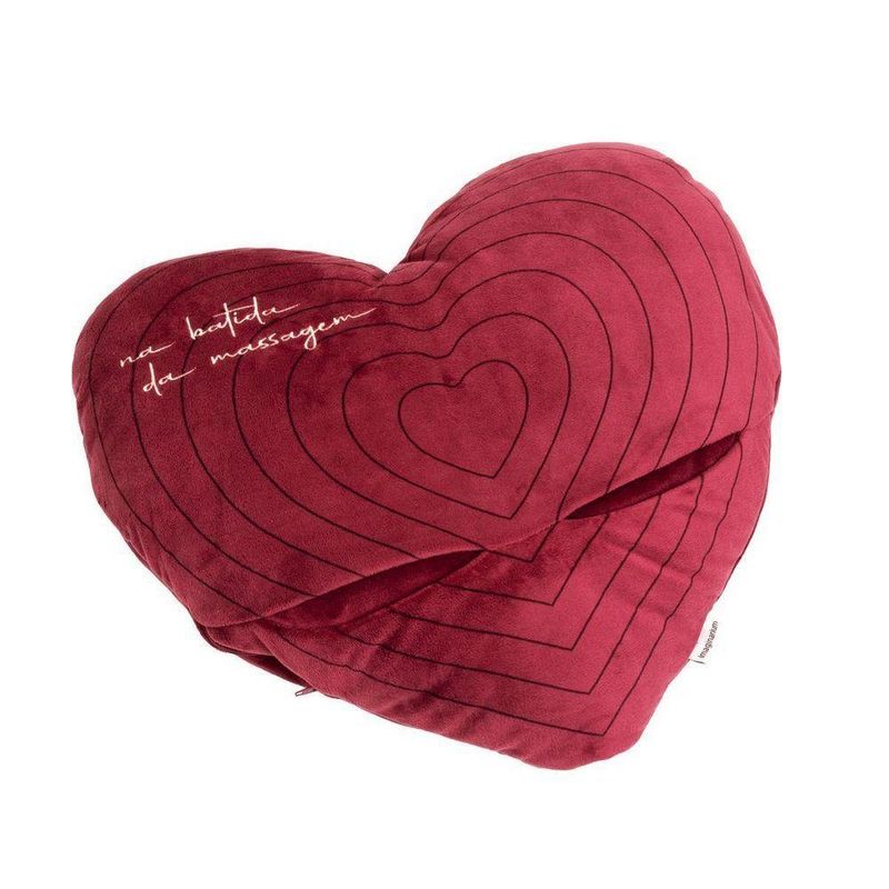 Em formato de coração e contando com a frase na batida da massagem bordada em off-white, além de te ajudar a relaxar curtindo um momento de autocuidado só seu, ela também é uma ótima opção de presente criativo e afetivo para surpreender aquela pessoa querida.