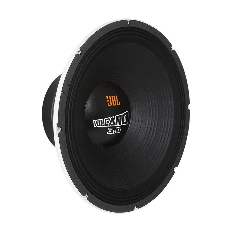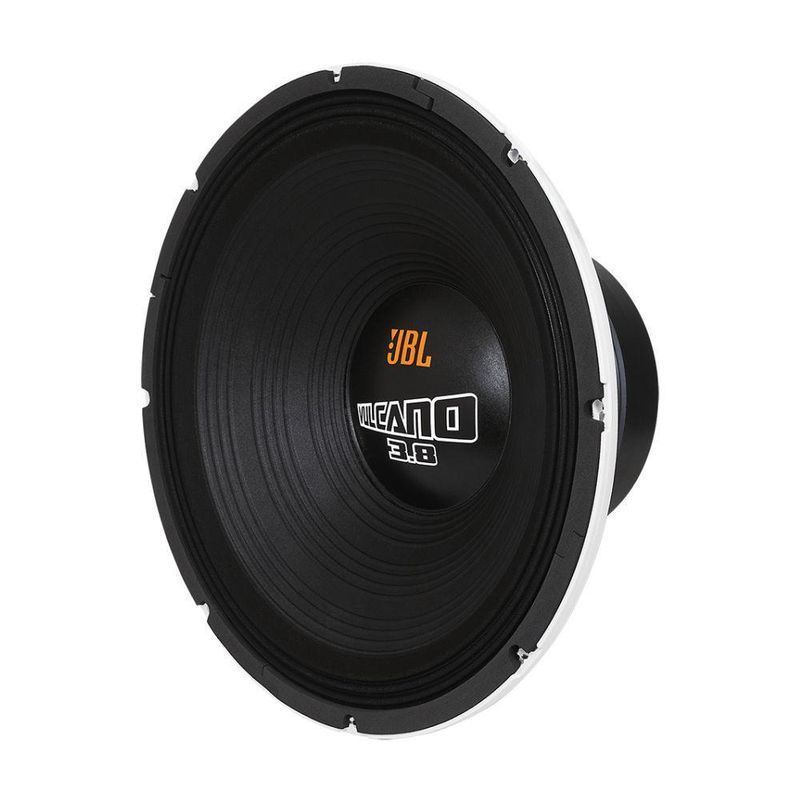 Alto Falante Subwoofer JBL Vulcano 18SWV3.8 Ultimate 18 1900W RMS 4R*Imagens meramente ilustrativas.,:ESPECIFICAçõESDiâmetro nominal: 457mm / 18Impedância nominal: 4#simboloOmegaPotência:PEAK: 3800WRMS: 1900WSensibilidade (1W@1m): 94,5dB SPLResposta de Frequência @-10 dB: 60 à 2000HzVolume ocupado falante: 7,0LPeso conjunto magnético: 12400gDiâmetro da bobina: 100mmCódigo reparo: 29003313Freq. corte mínima recomendada (12dB/oit): 40HzPeso líquido 14500g PARÂMETROS DE THIELE-SMALLFs: 49,0HzRe (Para DVC, considerar bobinas em série): 3,3#simboloOmegaQms: 24,2Qes: 0,5Qts: 0,5Vas: 81,2LRef Eff: 1,78%Sd: 0,1194m²Vd: 1313cm²Vmáx: 11,0mmßl: 22,7T.m