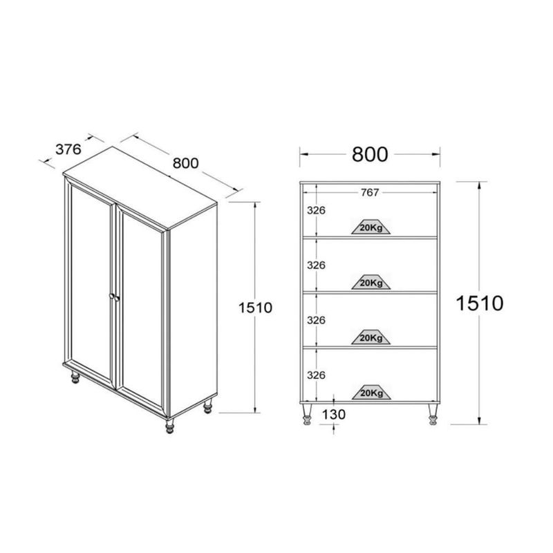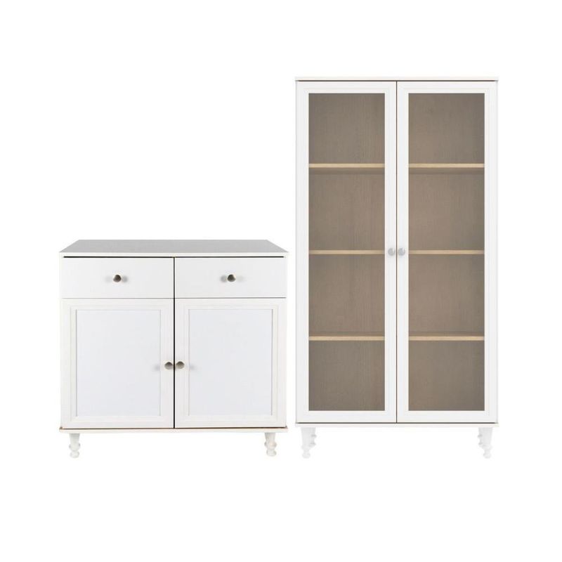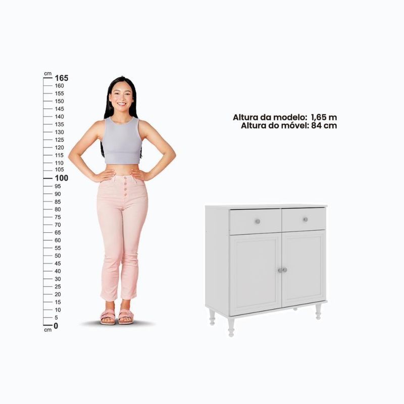 Aparador 2 Gavetas 2 Portas + Cristaleira Ditália 2 Portas R-629 E-957 Branco