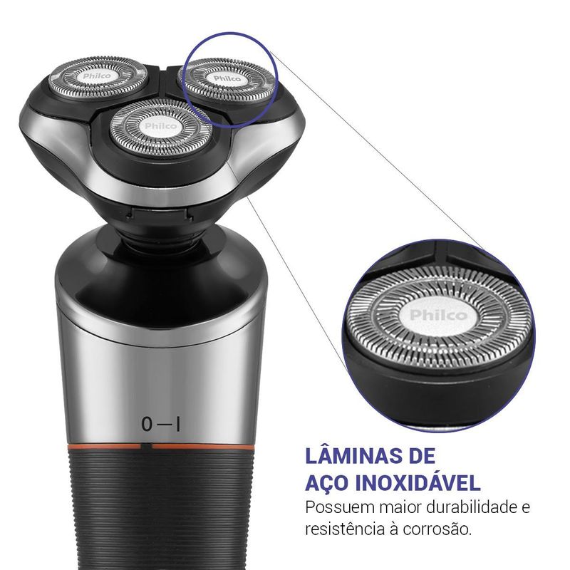 Equipado com lâminas de aço inoxidável e 3 cabeças flutuantes, este barbeador se ajusta perfeitamente aos contornos do seu rosto, proporcionando um barbear rente e preciso. E não se preocupe com a duração da bateria, a tecnologia de íon de lítio oferece até 90 minutos de autonomia com apenas 90 minutos de carga.
