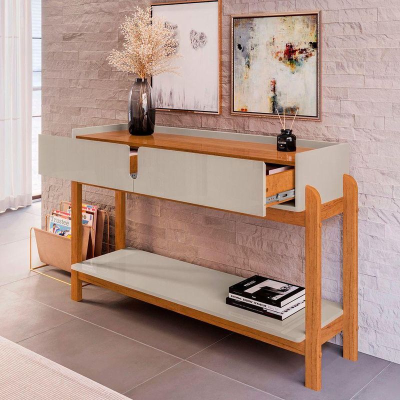 Aparador De Sala 2 Gavetas 130cm Nay C14 Off White/cedro - Mpozenato